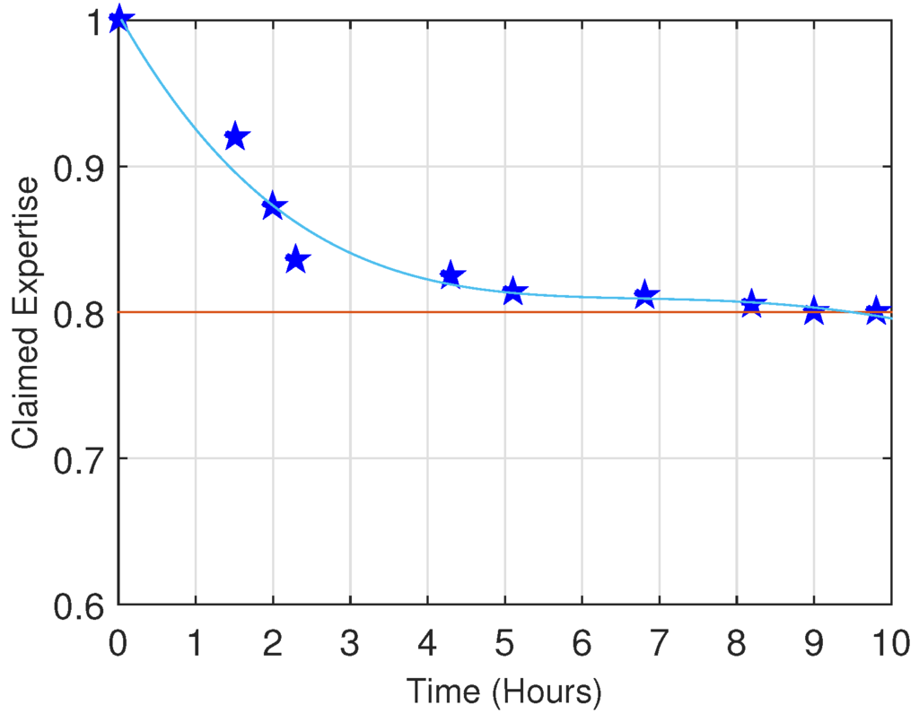 Figure 6 shows the convergence of the claimed expertise to the ground truth. We randomly choose a user as an example. As we can see, the feedback mechanism effectively adjusts the user’s expertise, gradually approaching the true value within a few hours.