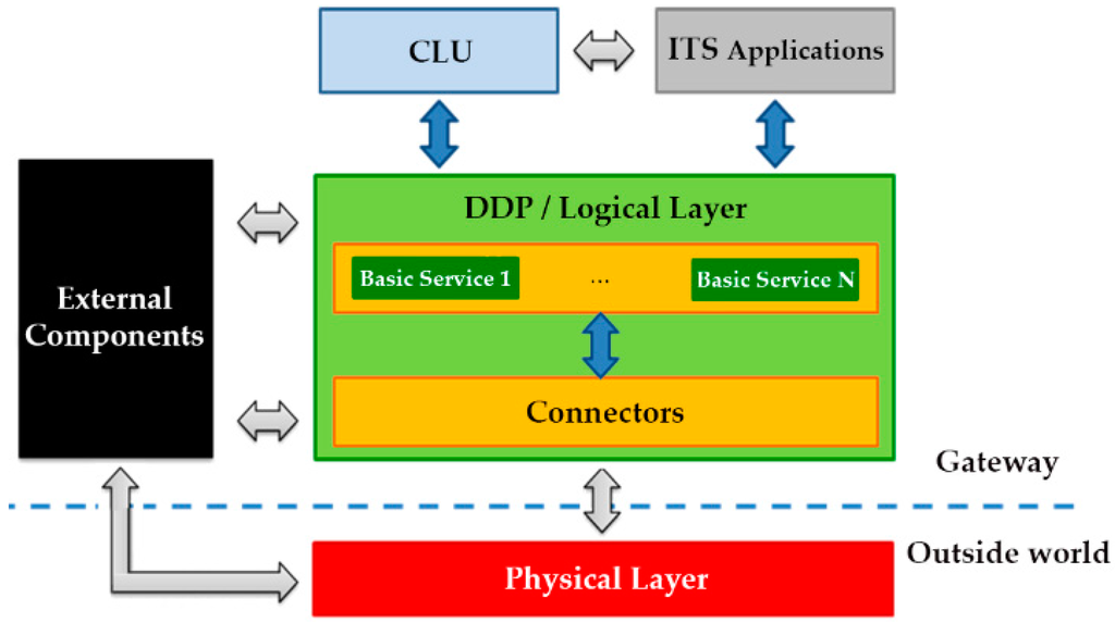 - Data Distribution Platform (DDP)/Logical Layer. The Logical Layer provides the basic capabilities needed by the ITS services and the CLU in order to interact with the physical layer and the data available. The key component of the logical layer, the DDP, includes the mechanism to communicate between applications and services by managing an events-based architecture. The functionality of the DDP will be further described in Section 3.2.