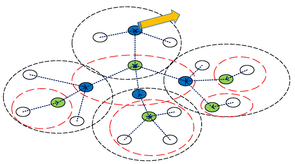 - Blum, J.; Ding, M.; Thaeler, A.; Cheng, X. Connected Dominating Set in Sensor Networks and MANETs. In Handbook of Combinatorial Optimization; Du, D.-Z., Pardalos, P.M., Eds.; Springer: New York, NY, USA, 2004; pp. 329–369. [Google Scholar]