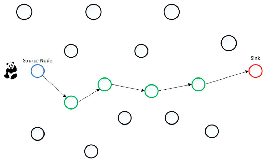 - Shao, M.; Yang, Y.; Zhu, S.; Cao, G. Towards Statistically Strong Source Anonymity for Sensor Networks. In Proceedings of the 27th Conference on Computer Communications INFOCOM 2008, Phoenix, AZ, USA, 11–16 March 2008.
