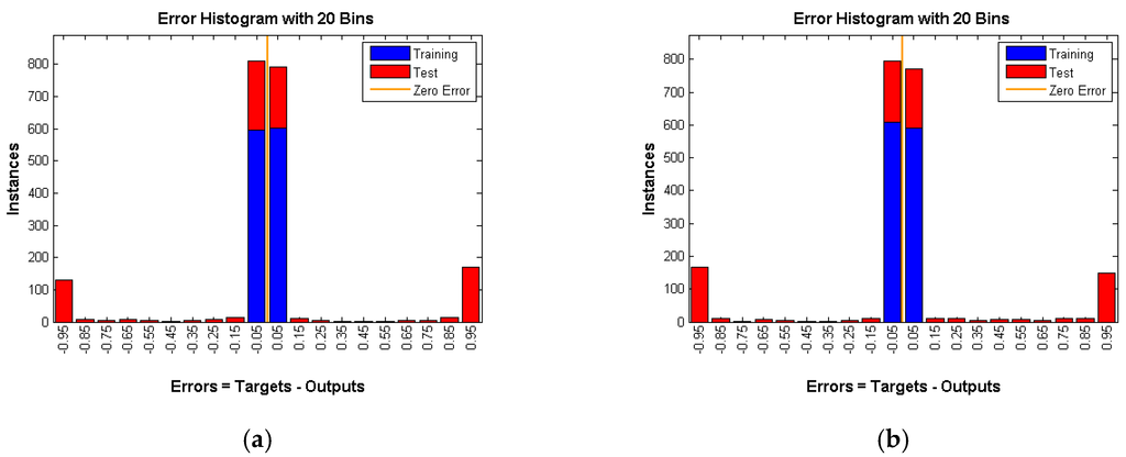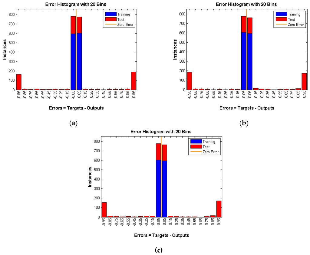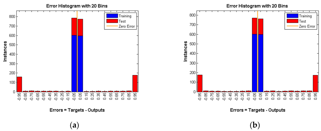 As shown in Figure 10, Figure 11 and Figure 12 number of instances is the y-axis and errors are the x-axis. Errors are the difference between targets, which represent the expected outputs and outputs which represent the actual outputs. The error of the training data is almost 0, whereas the error of testing data is high and is around 50 percent (Table 1) in all three techniques under various rates. That means the neural network is confused about the existence of the real event (Panda) even after successful training of the network. This is a very strong indication that proposed techniques are very reliable and guarantee source anonymity.