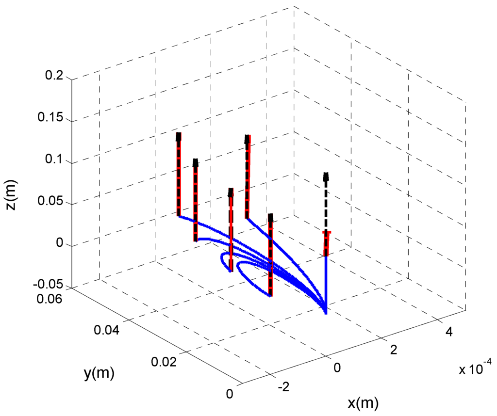 Numerical integration of Equations (7) and (8) specifies orientation and spatial position of all points and particularly the end point, required in the following section, on the centerline of the catheter. Equations (5) and (6) as an Initial Value Problem (IVP) provide to be substituted in Equation (7).