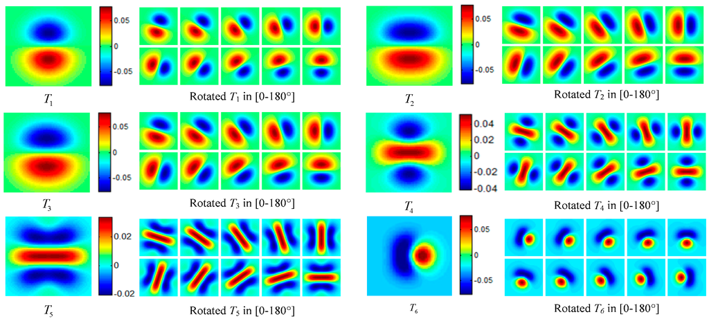 As stated by Freeman [58], the linear combination of several Gaussian derivative filter bases is steerable, hence we can obtain the omnidirectional ISS by linear weighting addition of a limited number of filtering responses of GDFs. Suppose we have the following filter template: