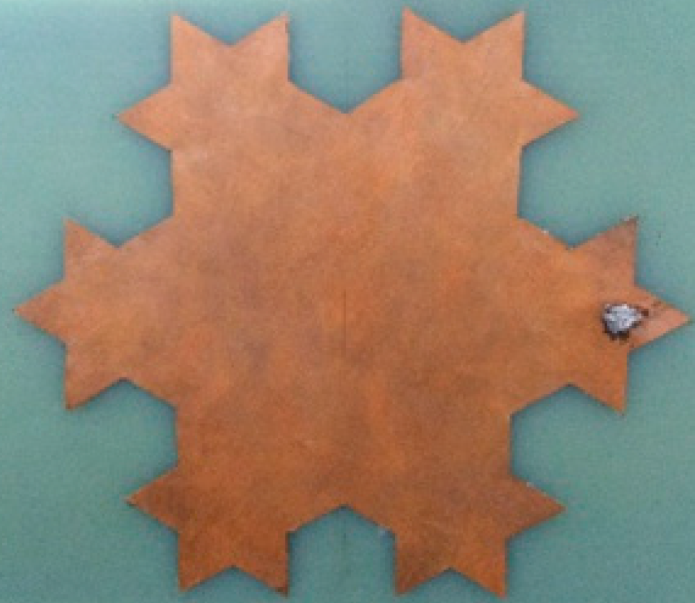 In this study, the snowflake patch is selected as the radiation patch of the microstrip antenna. The snowflake patch, also known as Koch island-type patch, has a fractal structure consisting of three Koch curves. The Koch curve that resembles snowflakes is a type of classic fractal geometry structure and mathematical curve proposed by the Swedish mathematician Helge Von Koch in 1904 [18,19]. The iterative process of the Koch curve is shown in Figure 2.