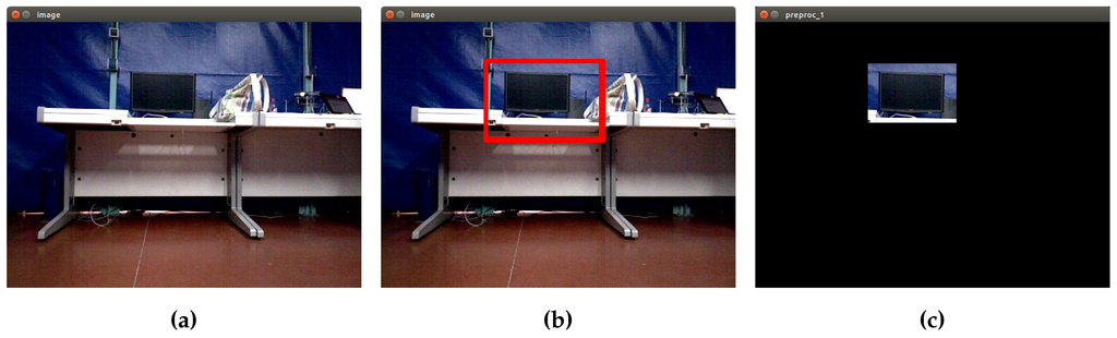 The process begins by getting an image from the camera or from a file. Then, the region of interest is selected by drawing a rectangle with the mouse enclosing the desired area. With this bounding box, a mask is created, isolating a sub-section of the current image. From this, a new image with the specific region is created and finally stored. This method allows one to work with certain regions of images, improving accuracy in the segmentation process. In Figure 9, the results of applying this method to segment a screen object are shown.