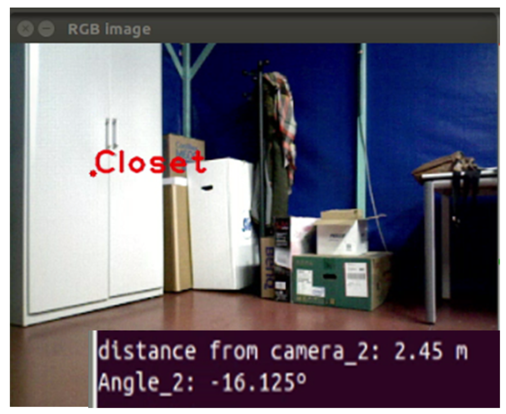 The model accuracy is , with a of misclassification rate. It was observed that at m, the small closet was not detected. The system is able to detect small closets at a distance of m. In Figure 22, a correct classification is shown.