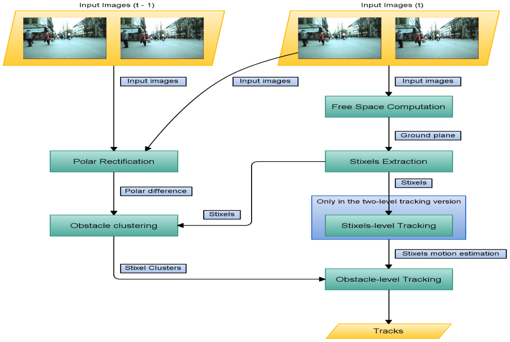 - In the second level, tracking is performed only at the object level. Each obstacle is compared to obstacles detected in previous frames, meaning that stixel-level tracking is no longer needed.