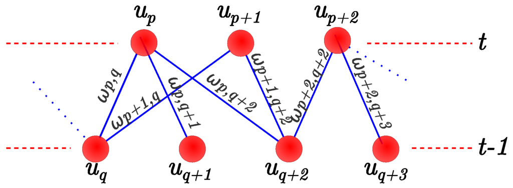 If a match is not found, the cost is infinite, and thus, the link is not included in the graph. The cost function is described in Equation (2).