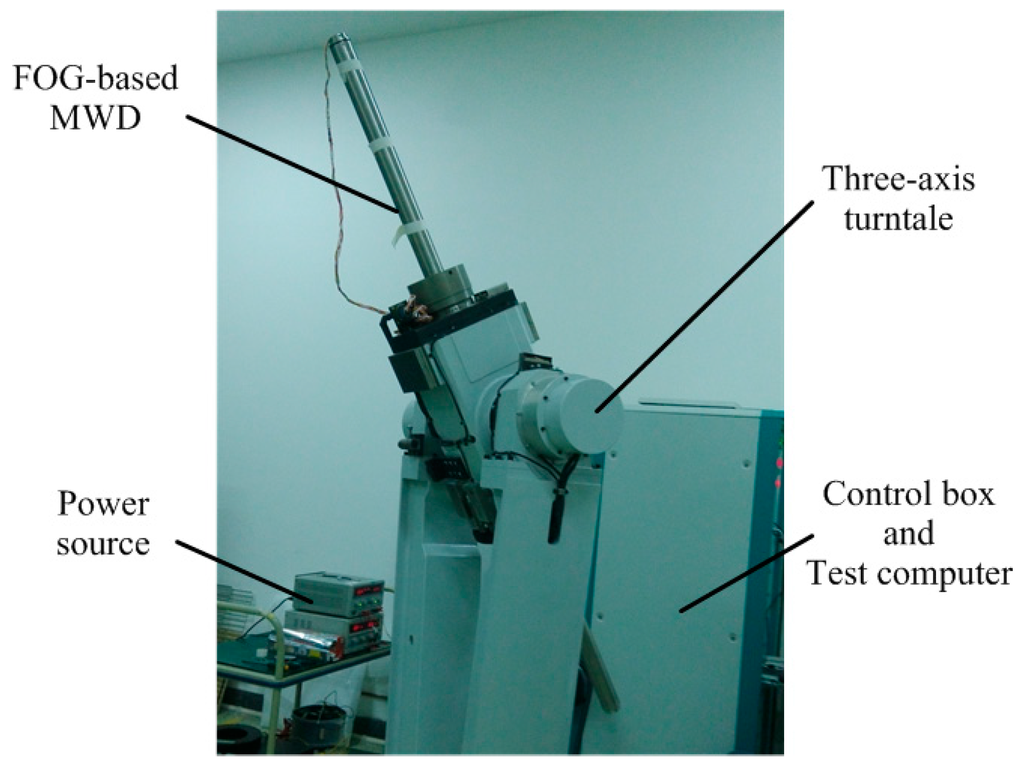 The initial evaluation of FOG-based MWD surveying system was conducted under laboratory conditions to validate the algorithm. Figure 8 shows the experimental process.