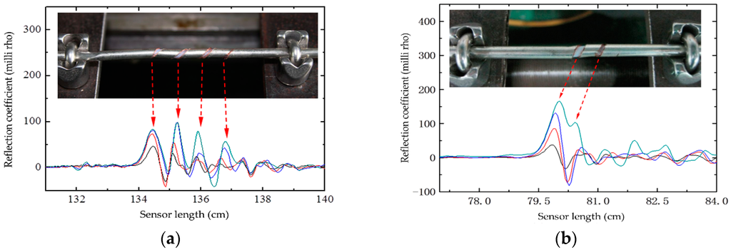 Reflection coefficient distribution along the sensor: (a) Sensor-III; and (b) Sensor-IV.