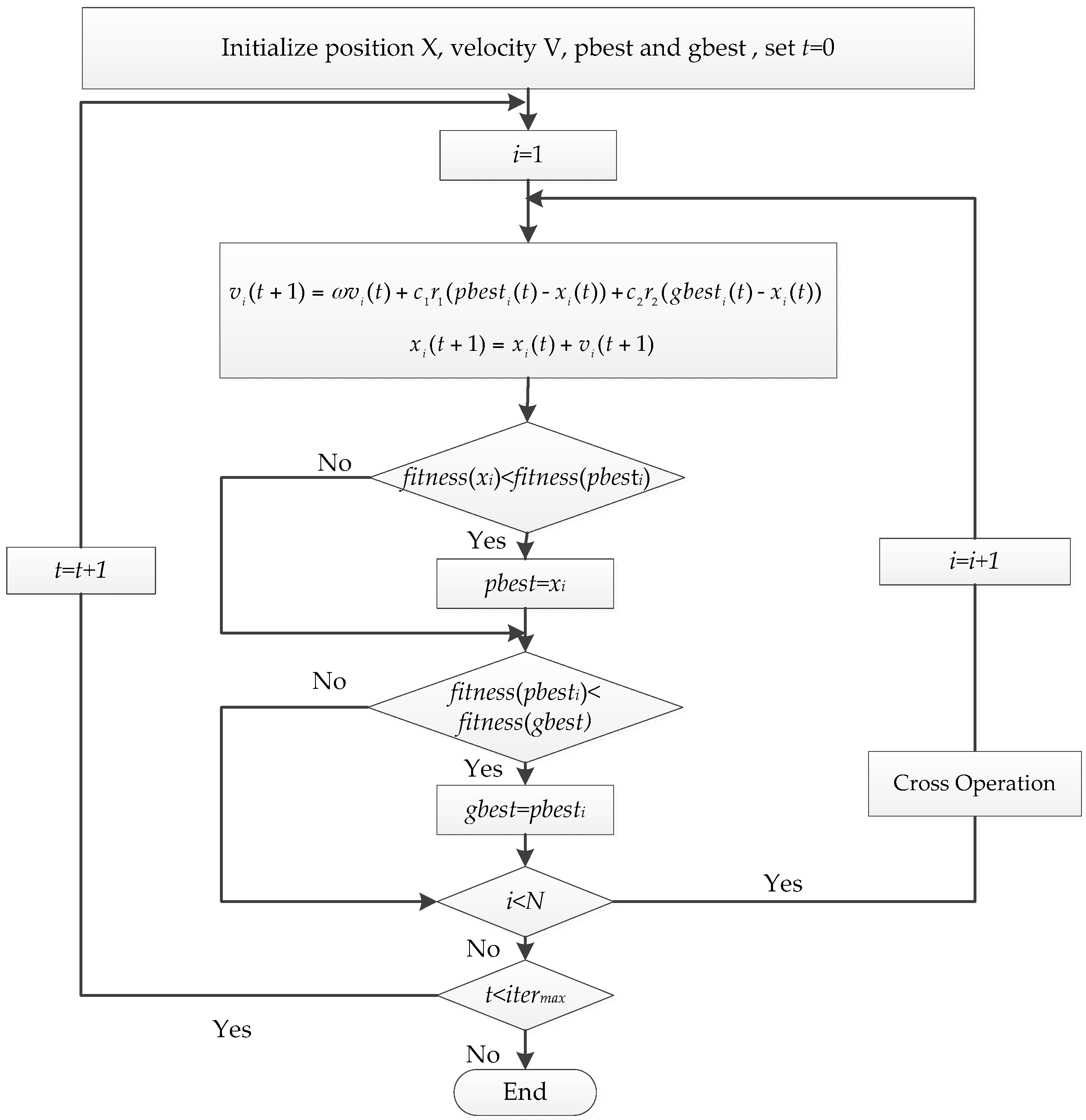 - Step 3: Evaluate the fitness of each particle by Equation (12), and determine pbesti and gbesti;