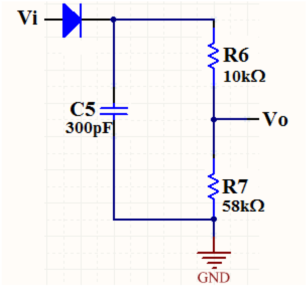 Schematic of the demodulation circuit. The envelope detection of the input Vi is realized by the diode, which has the property of unidirectional conductivity.