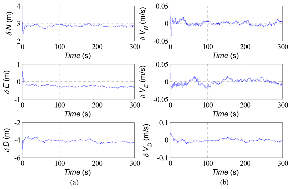 (a) estimation errors of the position; (b) estimation errors of the velocity.