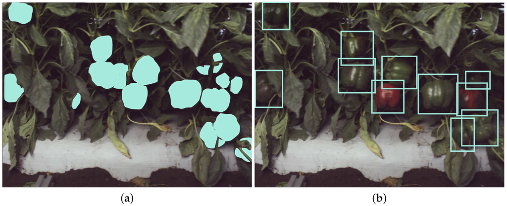 Given the VGG-16 network, we define three classes named ‘background’, ‘sweet pepper’ and ‘rock melon’ and fine tune the network. Regarding this fine-tuning topic [35], abundant resources are available from online [36], and we also have made publicly available our implementation and tutorial document [6].