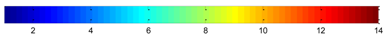 Activity levels were obtained from the states defined by Paraschiv-Ionescu et al. [32]. In summary, these states start by low levels pertaining to low intensity during sitting and standing, going to higher levels of activity obtained by combining gait cadence and duration of locomotion periods. Overall, this classification yields 18 ranked states, where each state is represented by a color code, with warmer colors indicating higher activity intensity. The barcodes are based on 1 s-windows represented by a color corresponding to the median of the activity state over the samples forming the window. Previous work has shown that such a barcode has higher color (state) entropy in healthy subjects compared to subjects with pain or disease [32]. Using the outcome of instrumented shoes, activity barcodes were similarly evaluated by using 14 states (represented by numeric codes) instead of 18 (Table 1). This reduction resulted from assigning only a single numeric code to both sitting (1) and standing (2) whereas, in the original activity barcode, sitting and standing were assigned 2 and 4 numeric codes, respectively, based on trunk movement intensity. These states were reduced to 2 in the present study to avoid using trunk sensor data and keep the activity barcode specific to the instrumented shoes. Walking was segmented into locomotion periods of duration d < 30 s, 30 s < d < 120 s and 120 s < d. For each locomotion period, the mean cadence was calculated in steps/min. The cadence was then segmented into cad < 50, 50 < cad < 80, 80 < cad < 140 and 140 < cad. The combinations of duration and cadence represent 12 numeric codes as shown in Table 1.