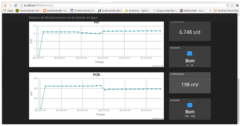 Further, the system allows to verify the water parameters quality in real time, based on rules predefined by some water managing agency. For example, in Brazil, according to CONAMA [3], the value of the pH for drinkable water shall be in between 6 and 9. Using this predefined information, the system verifies the data and displays in the screen whether the results are inside these predefined bounds.
