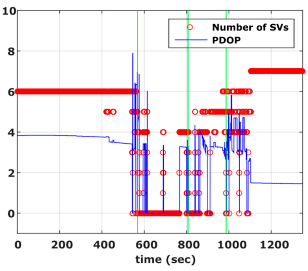 - Wang, L.; Groves, P.D.; Ziebart, M.K. Multi-Constellation GNSS Performance Evaluation for Urban Canyons Using Large Virtual Reality City Models. J. Navig. 2012, 65, 459–476. [Google Scholar] [CrossRef]