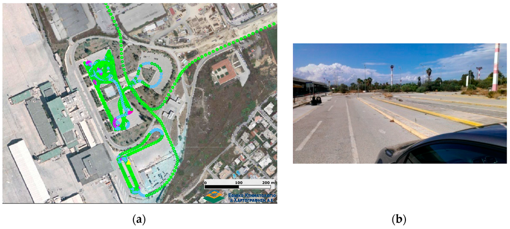 - Perakis, H.; Clausen, P.; Gikas, V.; Gilliéron, P.Y.; Spyropoulou, I. Positioning Accuracy of Vehicle Trajectories for Road Applications. In Proceedings of the 22nd ITS World Congress, Bordeaux, France, 5–9 October 2015.