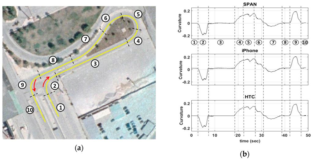 - Mok, E.; Retscher, G.; Wen, C. Initial Test on the Use of GPS and Sensor Data of Modern Smartphones for Vehicle Tracking in Dense High Rise Environments. In Proceedings of the 2012 Ubiquitous Positioning Indoor Navigation and Location Based Service (UPINLBS), Helsinki, Finland, 3–4 October 2012; pp. 1–7.