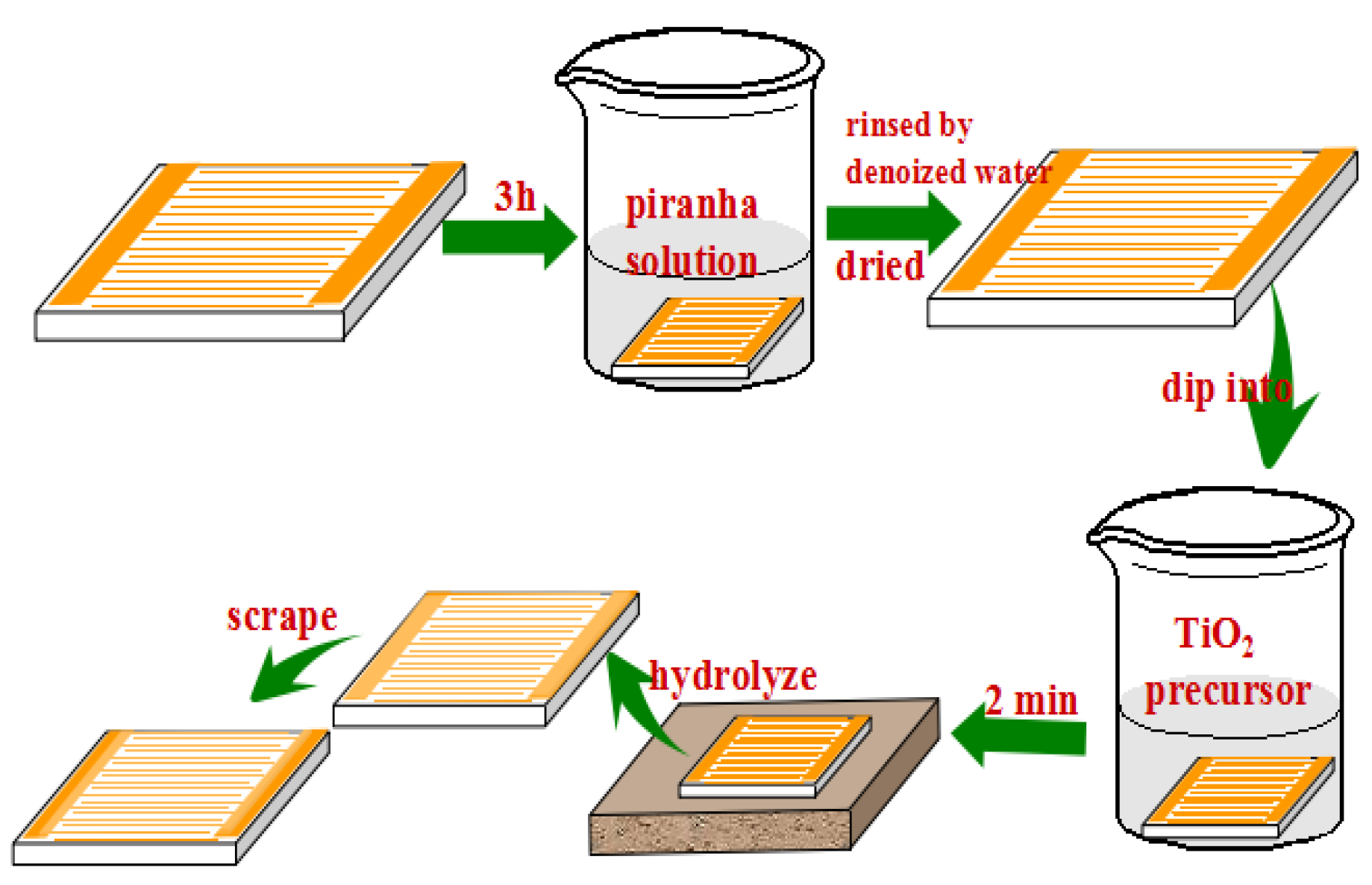 Schematic diagram of the preparation process for TiO2 gas sensor sample.