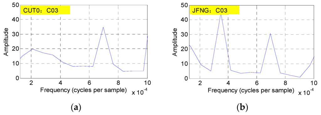 In practical application, a series can be reliably believed to have the periodicity characteristic when its corresponding amplitude is more than 80. However, Figure 13 shows that the multipath estimations of C03 and C05 could not satisfy this condition at the two stations at the same time, to a great extent, which further suggests that there is no periodicity bias in satellites C03 and C05.