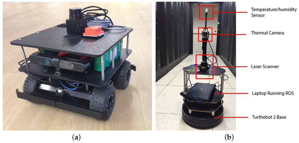 - Choi, W.; Park, K.-W.; Park, K.H. Scout: Data center monitoring system with multiple mobile robots. In Proceedings of the 2011 7th International Conference on Networked Computing and Advanced Information Management (NCM), Gyeongju, Korea, 21–23 June 2011; pp. 150–155.
