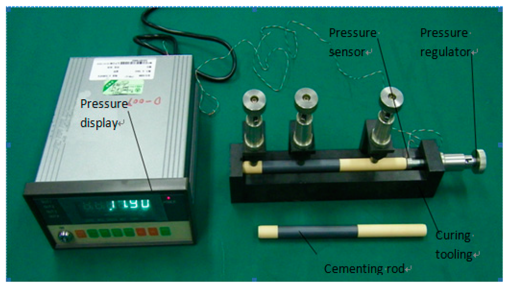 Regarding the temperature sensor setting, because the curing process occurred in an incubator which has a temperature sensor and display, the curing temperature can be directly controlled through the temperature detection and display of the incubator. The pressure sensor setting is shown in Figure 13 and Figure 14.