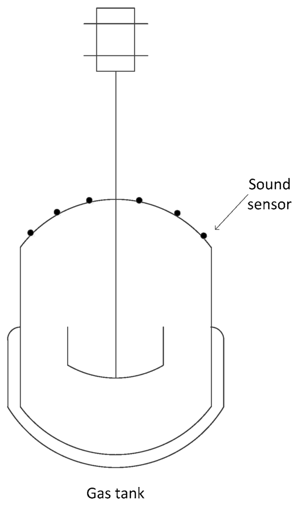 An important application of sensor networks is to detect features of events/targets within the sensor field. The detection probability of a space point by a sensor is usually related to the distance between them. However, the detection probability of a space point relative to a set of sensors is no longer simply computed as the addition of the detection probability of the point relative to each single sensor. Instead, data fusion can be used to derive the detection probability for different event scenarios [11]. Consider a specific application scenario, where wireless acoustic sensors are deployed to measure the sound intensity caused by leakage of a gas tank [10], as shown in Figure 1. If leakage of gas happens, the intensity of the sound could be measured by the adjacent acoustic sensors, and then the sensor measurements could be sent to the sink node. Consequently, the sink could process these measurements to deduce the events in the sensing field. More specifically, the sink could carry out parameter estimation from these gathering measurements for a given point to deduce the event of gas leakage. If the estimation of this point is considered to be reliable and close to some prior knowledge of sound intensity while the leakage took place, a leakage event can be deduced. That is to say, if the estimation on a point is regarded as reliable, the point could be deemed to be covered.