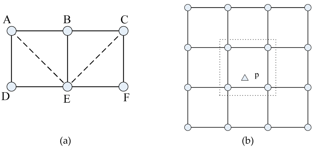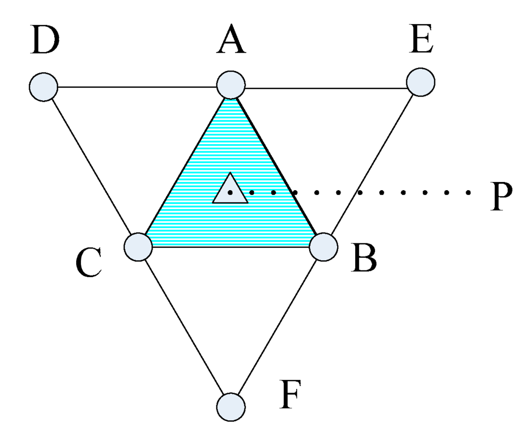 where Ap is the area of the lattice, and there are Np sensor nodes that constitute a lattice, while each sensor node is share by Nn lattices. For instance, as stated in Figure 1, in a triangular lattice pattern, Np = 3 and Nn = 6; and in a square pattern, Np = 4 and Nn = 4 in a hexagon pattern, Np = 6 and Nn = 3.