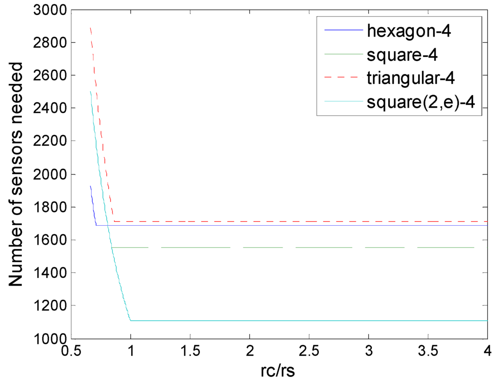 Equation (21) shows that rc/rs could determine the optimal deployment patterns for the sensor density based on (K,ε) coverage.