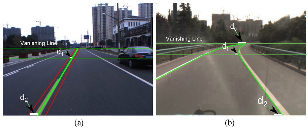 Evaluation criterion. (a) Straight lanes; (b) Curved lanes.