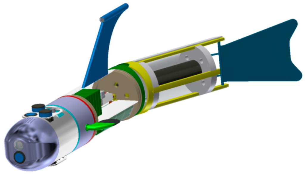 Side view of 3D model of the BAUV built in Polish Naval Academy (3D design by Bogdan Szturomski) [9].