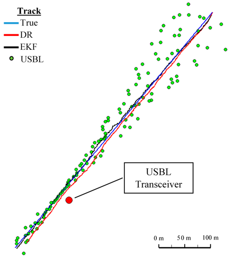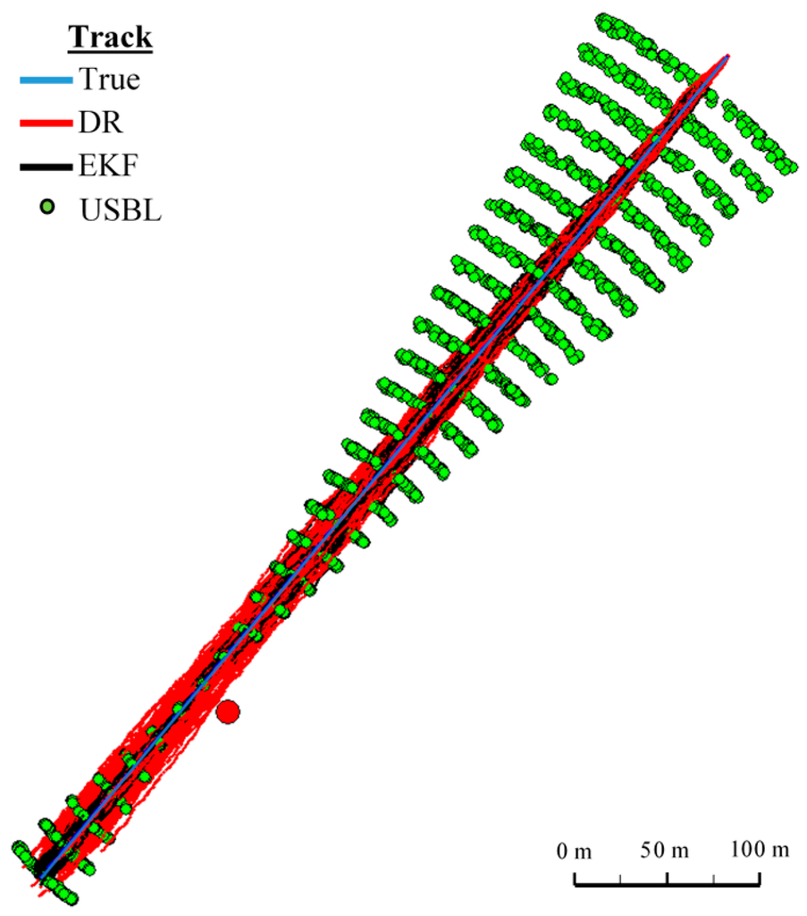 However, will the coordinates obtained by the EKF method, a combination of parameter measurements of BAUV motion and the direction and distance of the USBL system, be more accurate than either the coordinate USBL system or the DR method in all cases?