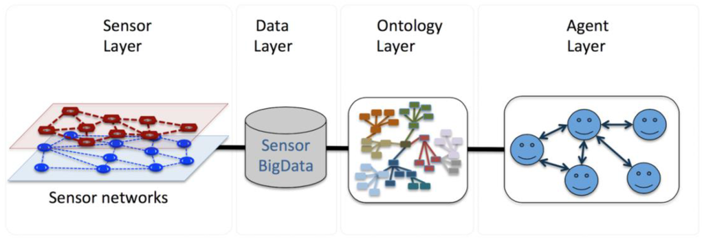 This is the part where data is collected, transformed, and stored in order to be used in the ontology or agent layer. Herein, we assume that our sensors are distributed around a particular geographic area, collecting different types of data. The goal is to have a real-time dashboard of this data and enable an ad-hoc analysis of historical data merged with weather data. The sensor data is gathered from several resources with a specific data format requirement.