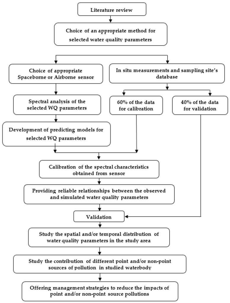 Although the results of studied articles indicated that the Landsat/TM was used much more than other sensors to estimate the amount of DO, BOD and COD, this research found relatively low potential and accuracy of current remote sensing techniques for the measurements of DO, BOD and COD values in waterbodies, unless there are enough and adequate ground proofs. In situ measurements of surface water radiation and atmospheric corrections of images are vitally important for both the calibration and validation of remotely sensed data.