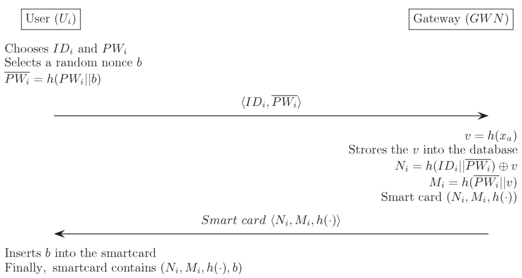 - computes . chooses a new smart card, and writes into the smart card’s memory. Then, sends the smart card to through a secure channel.