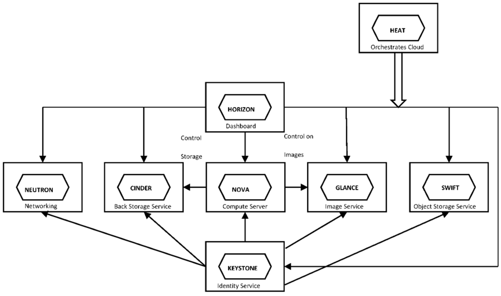 OpenStack includes several key components such as Compute, Identity, Networking, Image, Block Storage, Object Storage, Telemetry, Orchestration, and Database. Figure 3 shows the OpenStack system architecture. A brief description of the different components and what they provide is given below.