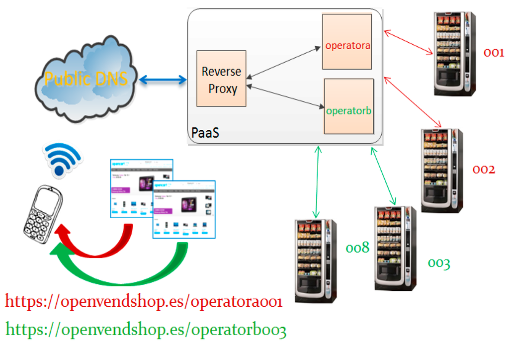 At this point it is really important to note that different vending machines are accessed through only one registered domain, e.g., “openvendshop.es”, (see Figure 7). This mechanism allows not having to register domains for each vending operator, or for each vending machine. It makes the plug-and-play process independent of 3rd party DNS and it contributes to cost affordable solutions, as domain providers use to limit or charge for subdomains.