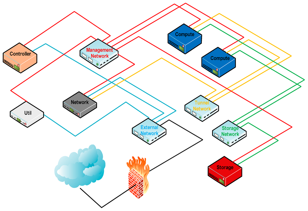 - storage: used for communication between the storage nodes (cinder) and the compute nodes.