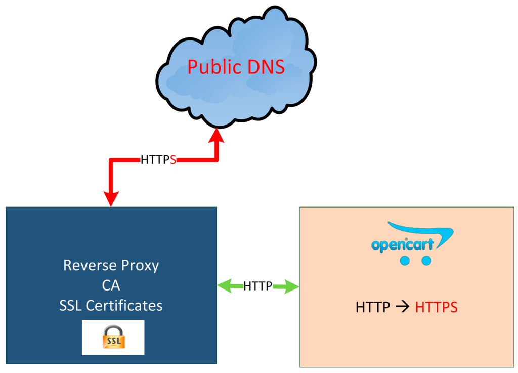 - Once the above process is completed, another similar process triggers in the reverse proxy, to configure an access from the Internet to OpenCart stores. The different scripts in this case accomplish the following actions: