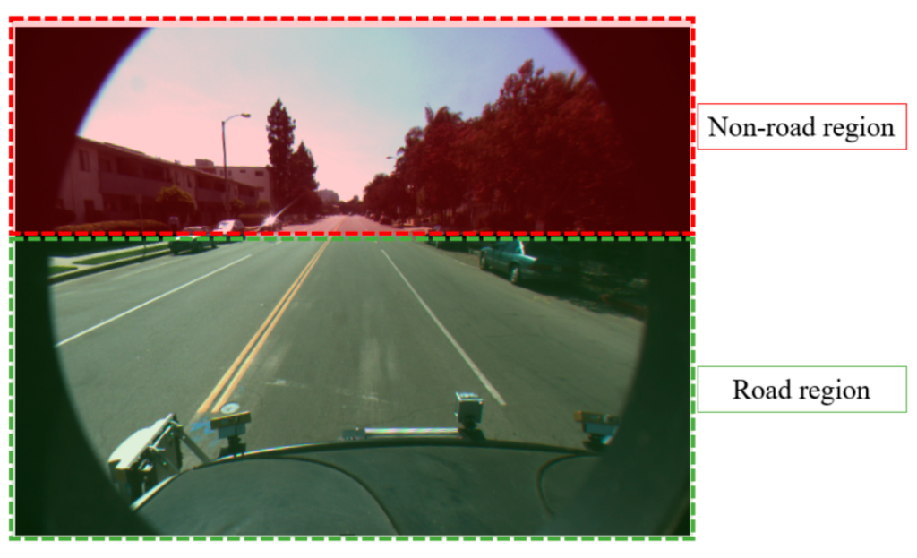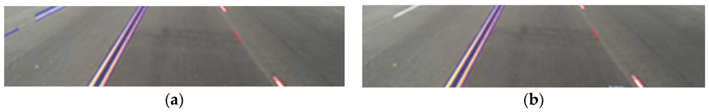 Accurate detection of road lanes is an important issue in lane departure warning systems and driver assistance systems. Detecting lane boundaries enables vehicles to avoid collisions and issue a warning if a vehicle passes a lane boundary. However, lane boundaries are not always clearly visible. This can be caused, for instance, by poor road conditions, insufficient quantity of paint used for marking the lane boundary, environmental effects (e.g., shadows from objects like trees or other vehicles), or illumination conditions (street lights, daytime and nighttime conditions, or fog). These factors make it difficult to discriminate a road lane from the background in a captured image. To deal with these problems, current research applies various methods ranging from low-level morphological operations to probabilistic grouping and B-snakes [1,2,3]. Detail explanations of previous works are shown in Section 2.