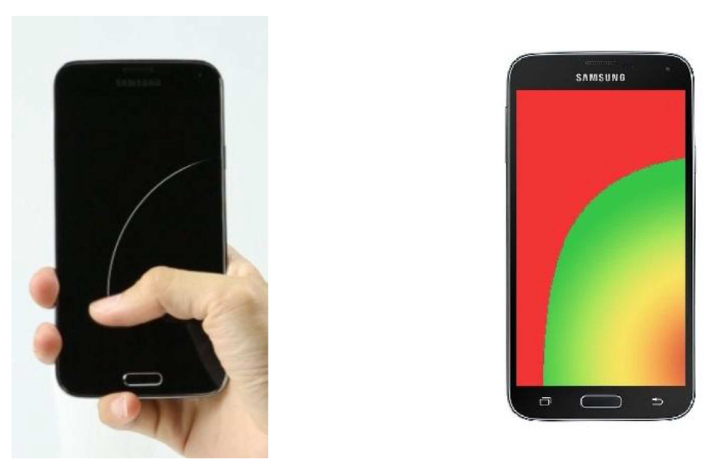 Limited touching range of the thumb on the Samsung Galaxy S5.