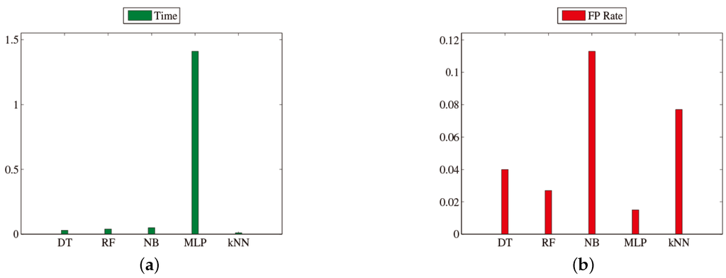 (a) Total time and (b) FPR of different classifiers.