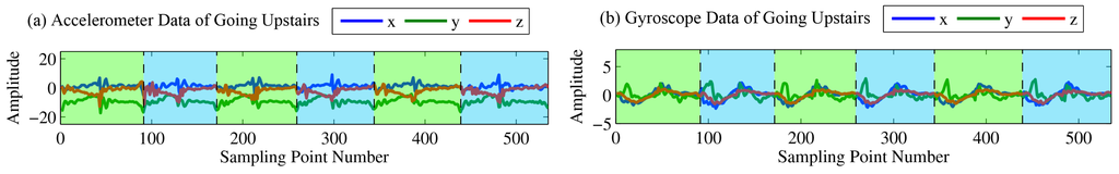 Accelerometer (a) and gyroscope (b) data of going upstairs.