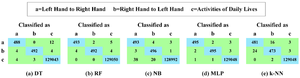 In this part, we report the performance for recognizing the current operating hand of our first system, when utilizing pattern recognition algorithms.