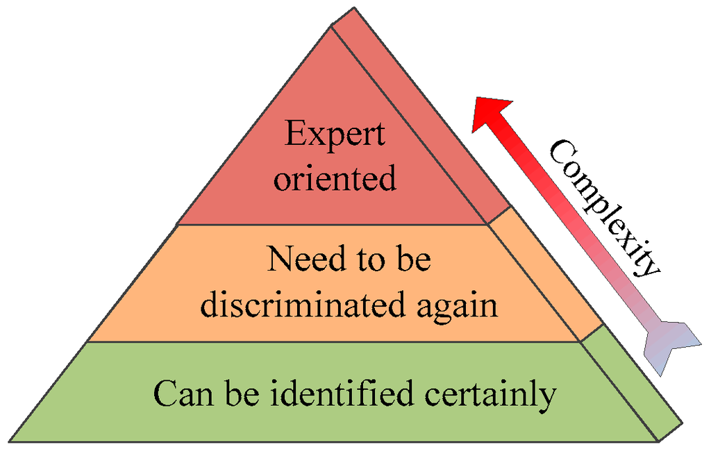 As most ship targets and false alarms present different characteristics, discrimination methods based on features play a most important role and perform well in ship discrimination. However, discrimination methods based on features cannot identity false alarms with same features like ship targets, e.g., azimuth ambiguities. Besides, automation discrimination cannot guarantee the correctness of discrimination results. Thus, a better way for ship discrimination is to take into account various discrimination methods. In this paper, we propose a comprehensive ship discrimination method. The basic idea underlying the proposed method is based on discrimination complexity as shown in Figure 5. Above all, it rejects false alarms which can be identified certainly by certain discrimination based on features (CeD). Then, confidence discrimination based on features (CoD) is applied. Each discrimination result will be marked with a confidence probability, followed by manual eye inspection. Finally, it proposes to discriminate false alarms caused by azimuth ambiguities, which need expert knowledge.