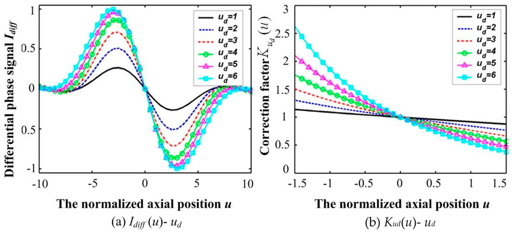 Variations in Idiff(u) and K(ud) responding to various defocused quantities ud.