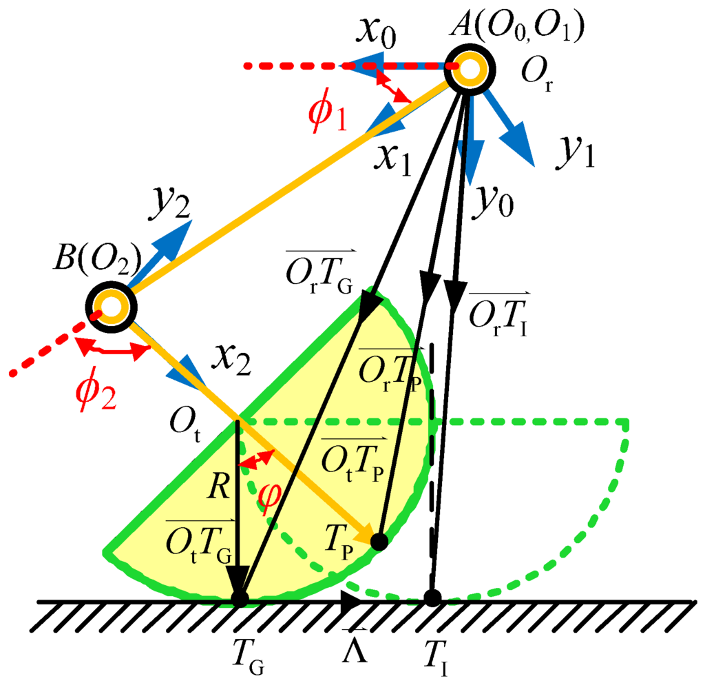 in which, is a circle between the foot reference point TP and the real contact point TG. After vector analysis of Figure 2, the foot reference position is obtained:
