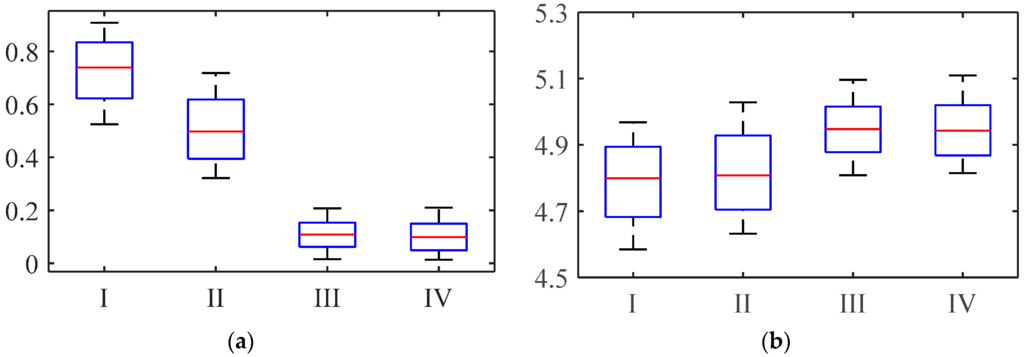 Walking experiment results of the hexapod robot: (a) Deviation in Y-direction; (b) Progress in Z-direction; (c) Position deviations. I, II, III, IV, respectively represent tripod gait without correction, improved wave gait without correction, tripod gait with correction, and wave gait with correction.