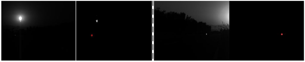 Figure 8 and Figure 9 shows the detection experiments under sunlight, even with smear effect in Figure 9, we can see that the targets are both detected correctly.